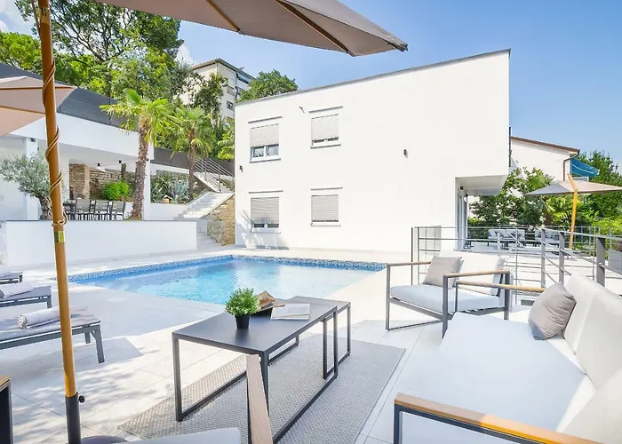 Villa Marta de 4 dormitorios ofrece sauna, parque acuático y terraza solárium. La Playa de Opatija está a aproximadamente 2 km de la villa, y el Paseo de la Fama de Croacia se sitúa a unos 10 minutos en coche.