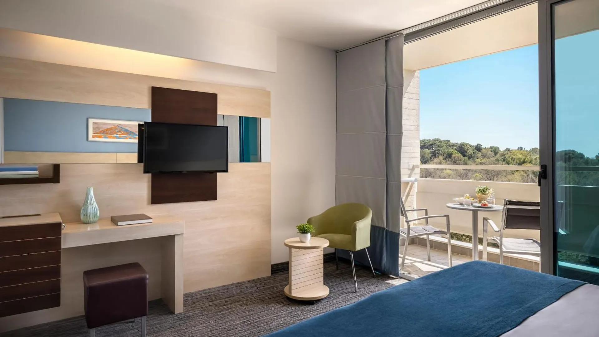 Dit 249-kamer Pical Sunny Hotel By Valamar Poreč, omringd door pijnbomen, op 50 minuten rijden van de luchthaven Pula.