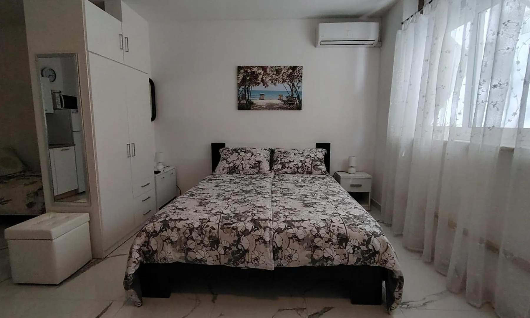 The 1-room Studio-Apartman Ella Apartment Porec is at a 6 km distance from the 6th-century Byzantine-style Episcopal Euphrasian Basilica. The apartment features an access to an equipped kitchen with a microwave, an electric kettle and a fridge.
